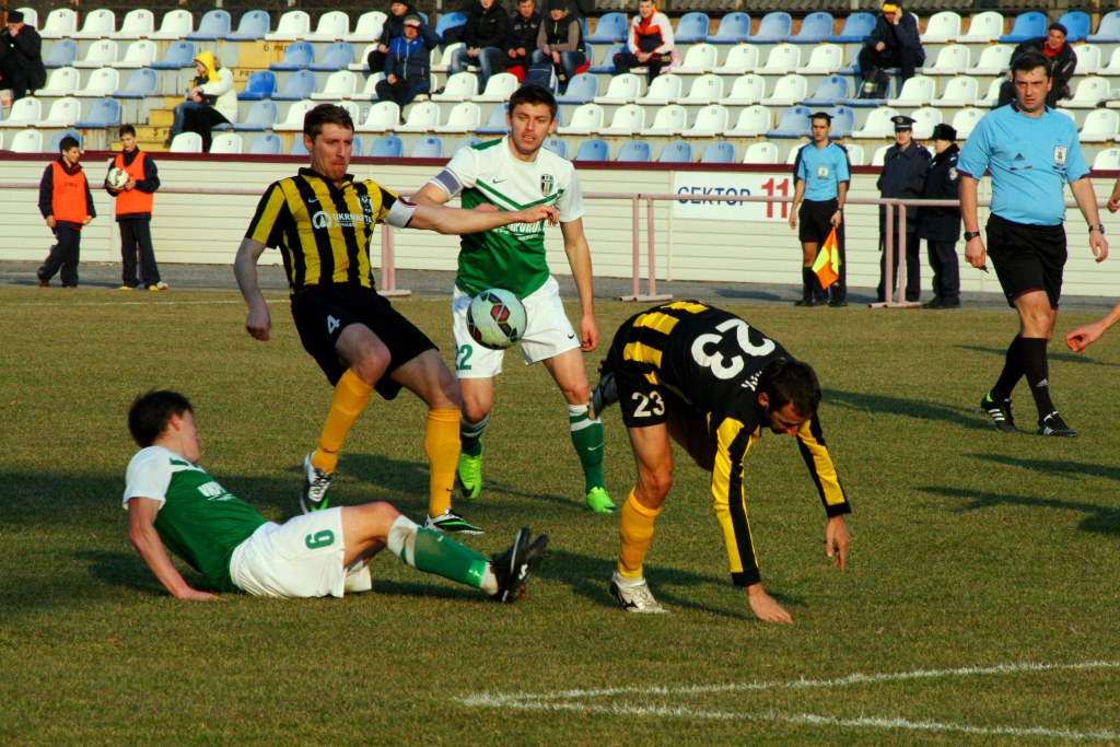 Поединок в Ахтырке между «Нефтяником» и «Александрией» изначально претендовал на звание матча тура. Встречи этих соперников всегда яркие и бескомпромиссные, и субботняя игра не стала исключением. Что для «гусар», что для гостей из Александрии желто-черные цвета являются клубными. Поэтому, гостевая и домашние трибуны стадиона «Нефтяник» пестрели одинаковыми оттенками. «Желто-черное» дерби подогревали болельщики, которые гнали своих любимцев в атаку. Кировоградский фан-сектор скандировал фамилию капитана – как раз в день матча Андрей Запорожан отмечал свой День рождения и был особо мотивирован. Гости настраивались на победу и считались явными фаворитами встречи.Однако, в пользу хозяев сыграла травма лидера «Александрии», которую он получил в самом дебюте матча, и 5-й минуте был вынужден уступить место на поле Банаде. Вынужденная замена несколько обескуражила александрийцев, но уже к 15-й минуте подопечные Владимира Шарана смогли перехватить игровую инициативу. Постоянная борьба за мяч не позволяла трансформировать гостям перспективные моменты в реальную угрозу воротам. В то же время контратакам «гусар» не хватало остроты. До первого забитого гола в активе обеих команд значились только неплохие дальние удары. Открыть счет удалось на 34-й минуте. При розыгрыше стандарта «александрийцы» нарушили правила у своих ворот, за что были наказаны 11-тиметровым ударом. Реализовал пенальти новичок «Нефти» Леван Арвеладзе. На второй тайм гости вышли с твердым намерением отыграться. У ворот «гусар» стало горячо. Шаран не забывал освежать силы «александрийцев» и заменами, и эмоциями. Также продолжил «Богданыч» свои перепалки с арбитром, которые еще в первом тайме запросто могли вылиться тренеру в желтую карточку. Однако вопреки такому запредельному настрою гостей, забили вновь ахтырчане.Взятие ворот произошло опять же после стандарта. При розыгрыше штрафного защитники гостей позволили «нефтянику» Вечтомову беспрепятственно замкнуть передачу ударом головой. 2:0 – серьезная заявка на победу, но к чести игроков «Александрии» они не опустили руки и сражались до последней секунды встречи, заставляя раз за разом ошибаться подопечных Вадима Колесника. Если бы на 87-й минуте Василий Грицук не пощадил своих бывших одноклубников и реализовал пенальти, то гости спасли бы игру. Не достающим до ничьи голом стал бы мяч Сухоцкого, проведенный им на 94-й минуте. А так, увы, только 2:1.![]() Покидавшие стадион болельщики «Нефтяника», беззлобно подшучивали: «Спасибо, «Александрии», что она по Турциям разъезжала, а мы тем временем на ее базе замечательно подготовились к сезону». «Нефтяник-Укрнафта» – ФК «Александрия» – 2:1Ахтырка. Стадион Нефтяник. 1 100 зрителей.Судьи: С. Даньковский (Киев), А. Либстер, Д. Оганесян (оба - Луганск).Делегат ФФУ: В. Шаленко (Харьков)«Нефтяник-Укрнафта»: Тимофеев, Циколия, Вечтомов, Зайчук, Свитличный, Бояринцев, Крапивный (Павелько, 61), Листопад, Арвеладзе (Сондей, 76), Е. Пасич (Войцеховский, 58), Шестаков (Антонюк, 88)«Александрия»: Новак, Микицей, Басов, Имереков, Сухоцкий, Запорожан (Банада, 7), Леонов (Степанюк, 53), Старенький (Голенков, 56), Черный (Пономарь, 69), Грицук, Коломоець.Голы: Арвеладзе (34, с пенальти), Вечтомов, 63, Сухоцкий, 90+4Предупреждения: Пасич, 15, Коломоец, 34, Старенький, 42, Листопад, 81, Тимофеев, 86На 87-й минуте Грицун не реализовал п